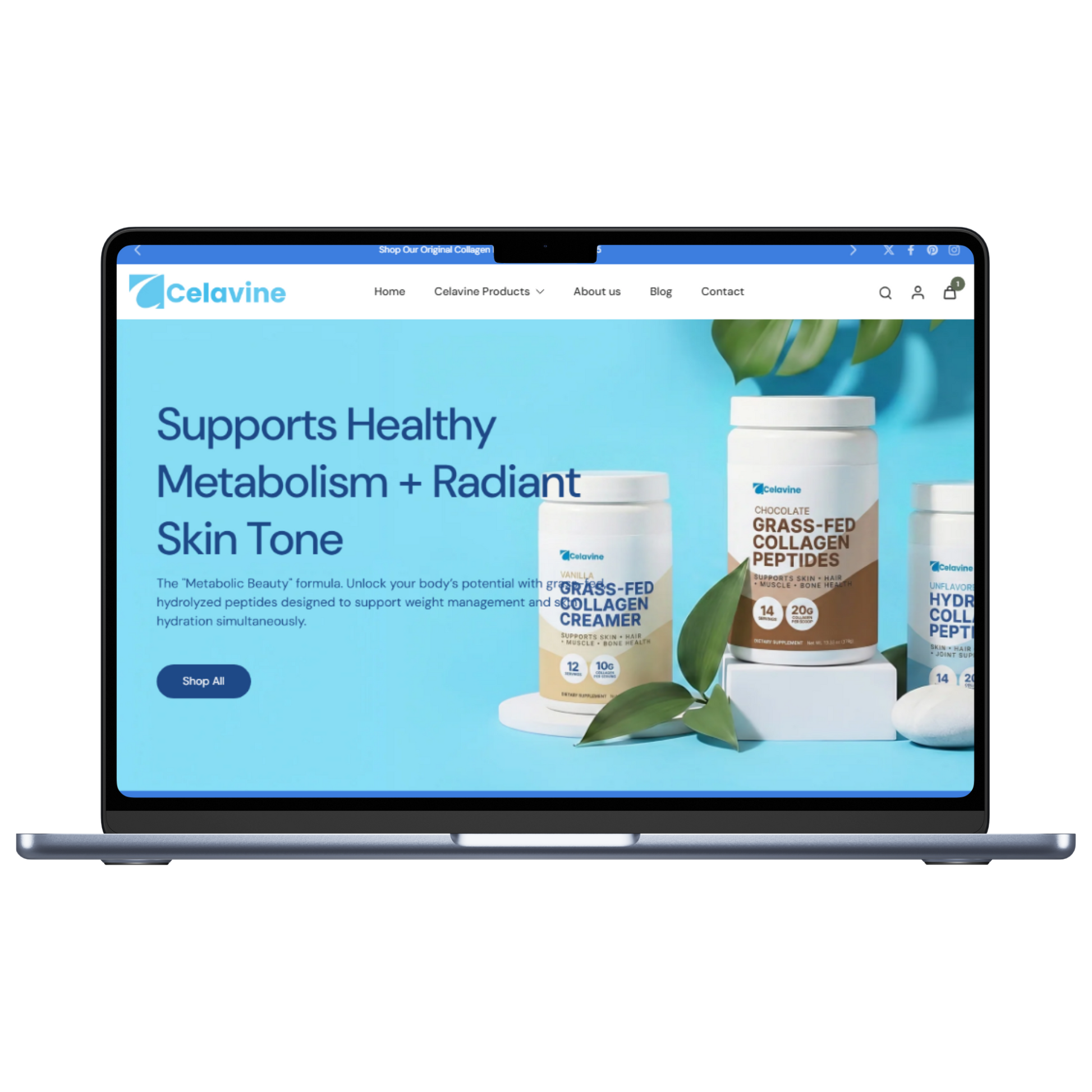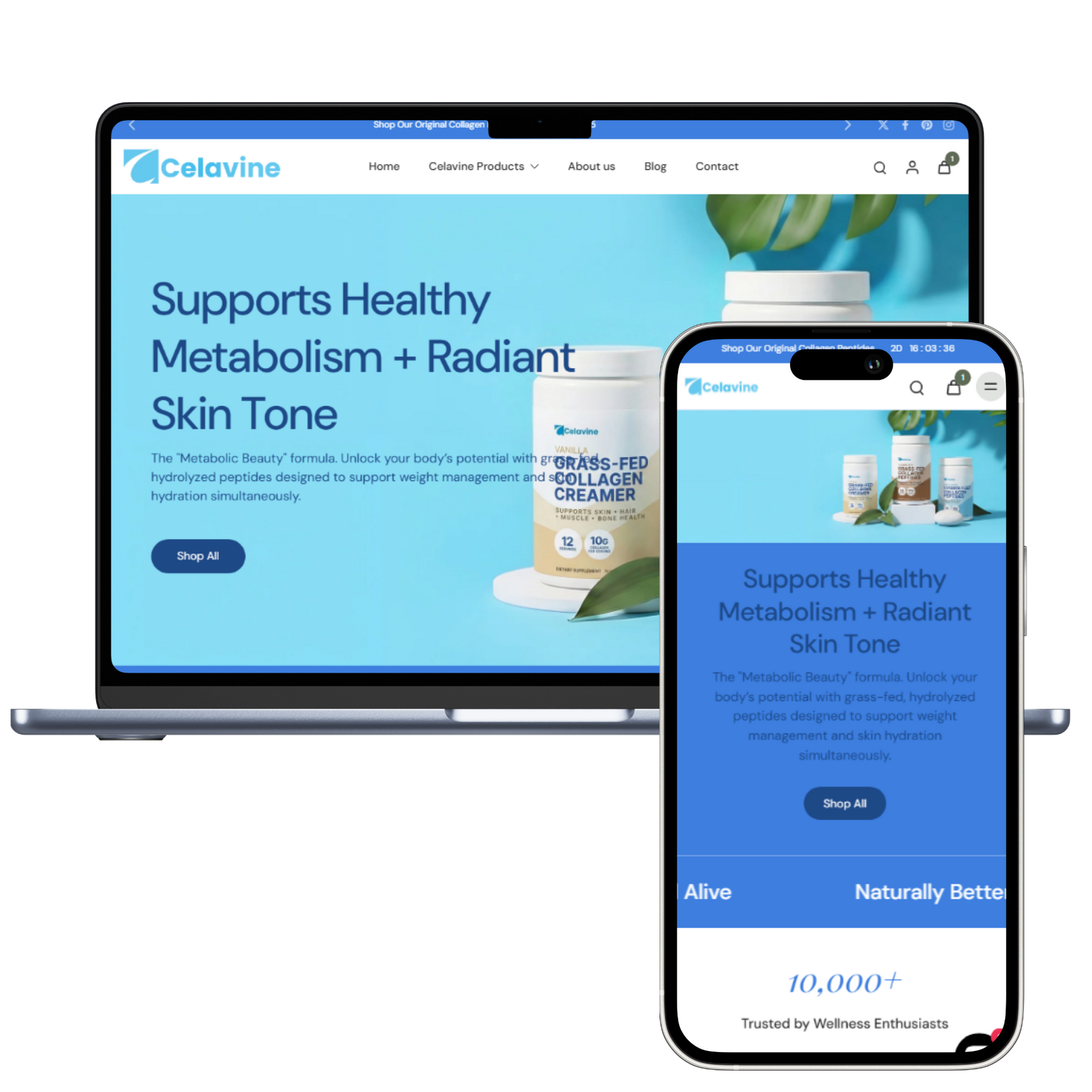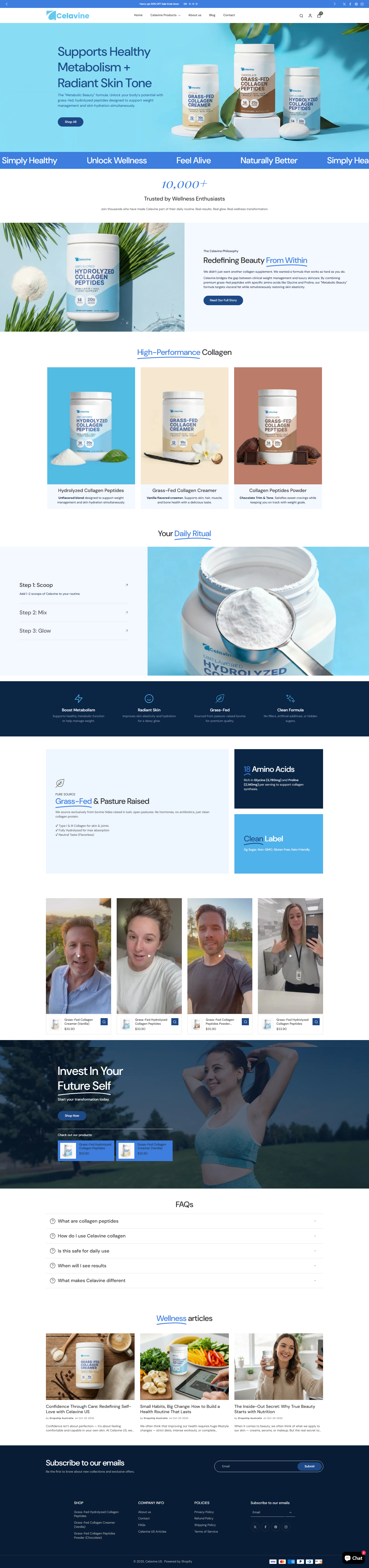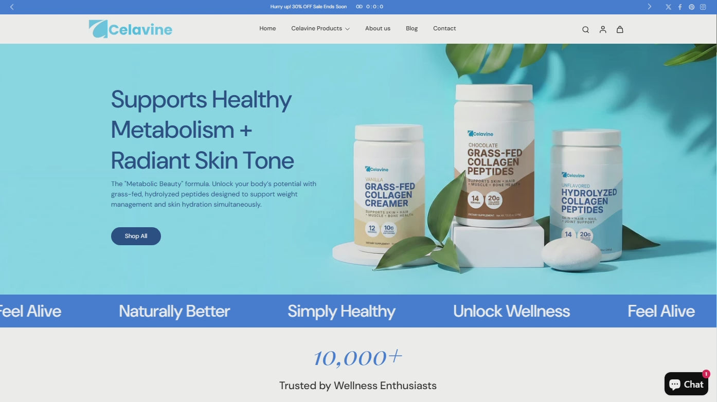 Celavine is your premium collagen-focused online store, featuring top-quality products like Collagen Peptides Powder, Grass-Fed Collagen Peptides (Chocolate), Hydrolyzed Collagen Peptides, and Collagen Creamer (Vanilla) — all ready to sell and fully private-labelled with branding.