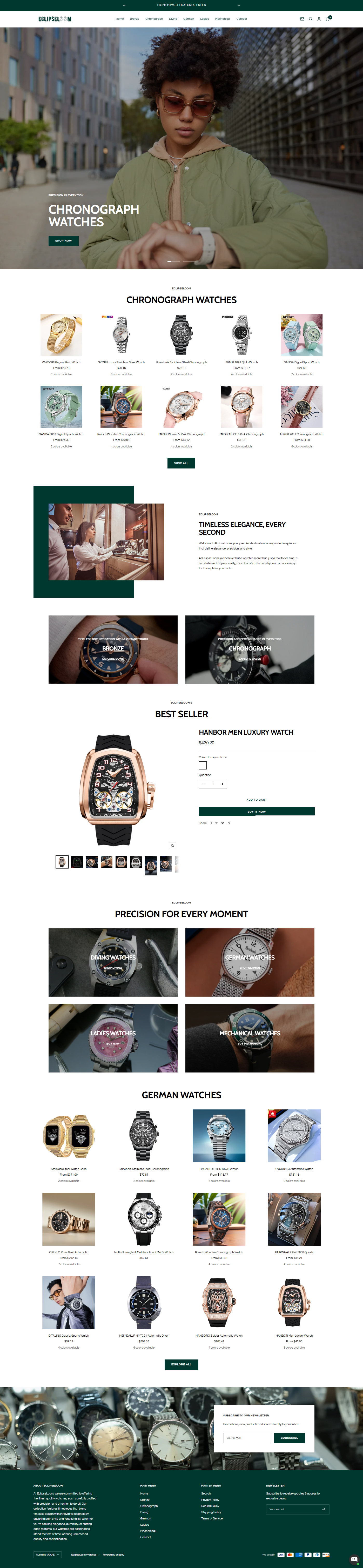 EclipseLoom (100 products included) is your ultimate destination for premium watches. Explore our range of Bronze Watches, Chronographs, Diver Watches, German Watches, Ladies Watches & Mechanical Watches. Start earning profits instantly with this ready-made store. Don’t miss out! Purchase today.
