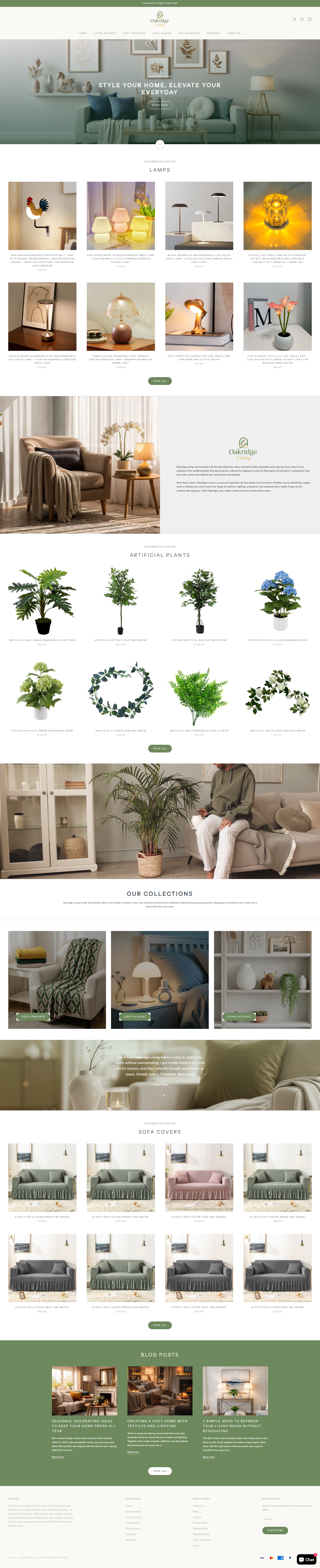 OakridgeLiving (940 products included) is your ultimate destination for home decor essentials. We sell Chair Covers, Clocks, Cushions, Lamps, Mirrors, Ornaments, Pots, Throw Blankets, and Wall Art. Start earning profits instantly with this ready-made store. Don't miss out! Purchase today.